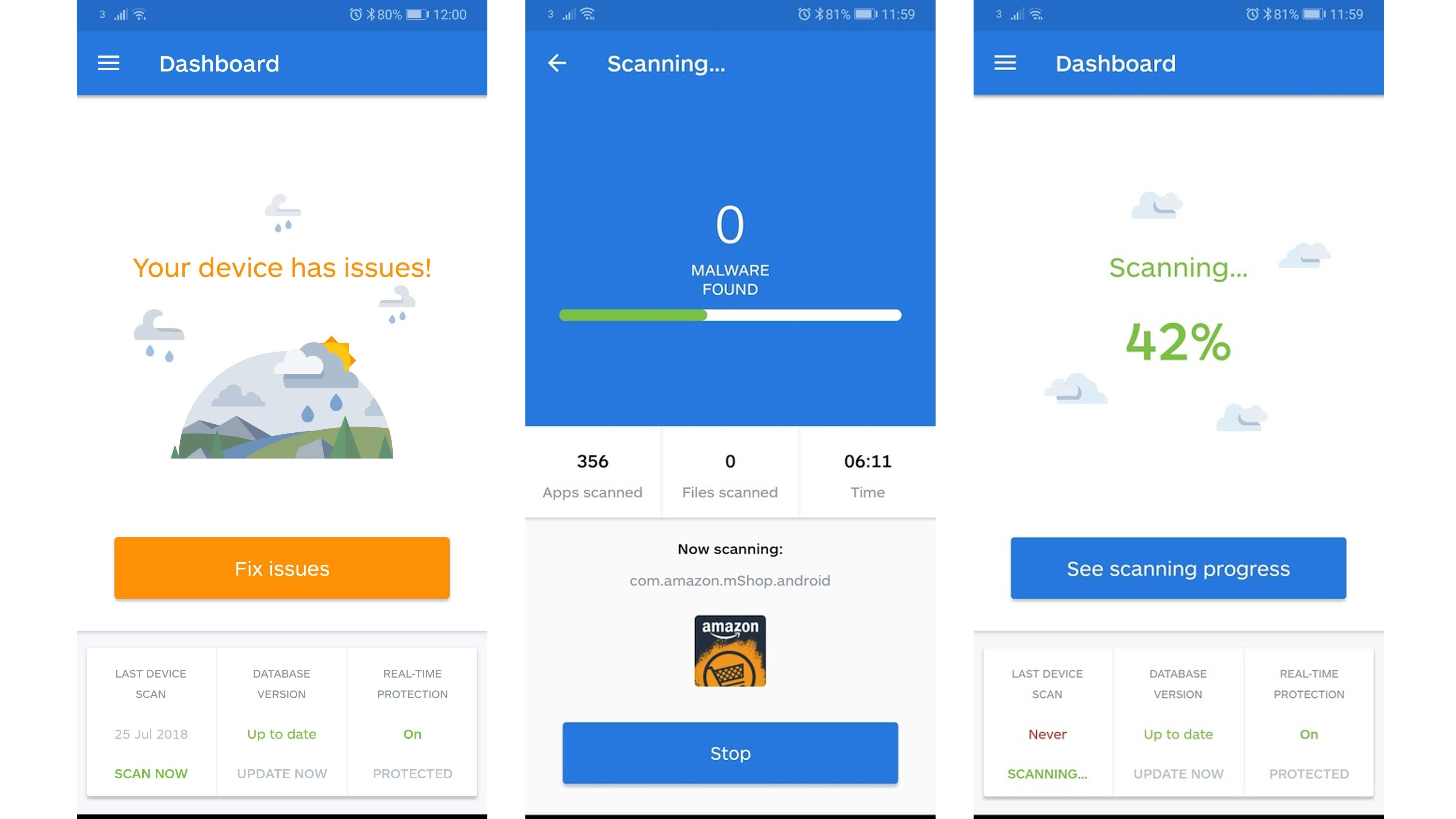 Malwarebytes can scan your device for viruses, adware and malware, but it also offers proactive protection, with real-time ransomware shields, protection from phishing URLs when using Chrome, alerts when there’s a malicious link in a text message, and the ability to block unwanted calls.